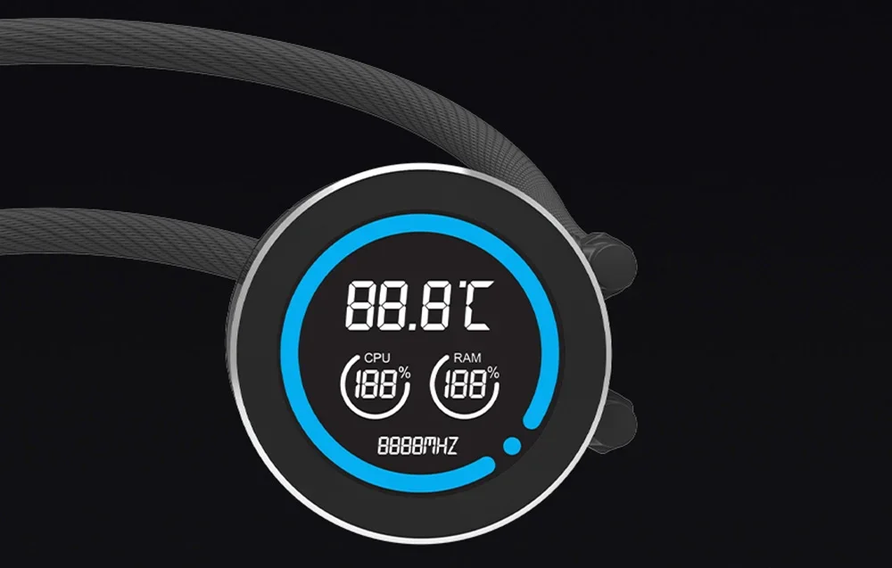 Ūdens blokam ir 2,1 collu LCD ekrāns ar 480x480 pikseļu izšķirtspēju un 16,7 miljoniem krāsu. Tas sniedz informāciju par procesora (CPU), RAM temperatūru un sūkņa ātrumu, ļaujot uzraudzīt parametrus tieši uz dzesētāja. Tas ļauj viegli pielāgot sistēmu jūsu vajadzībām.