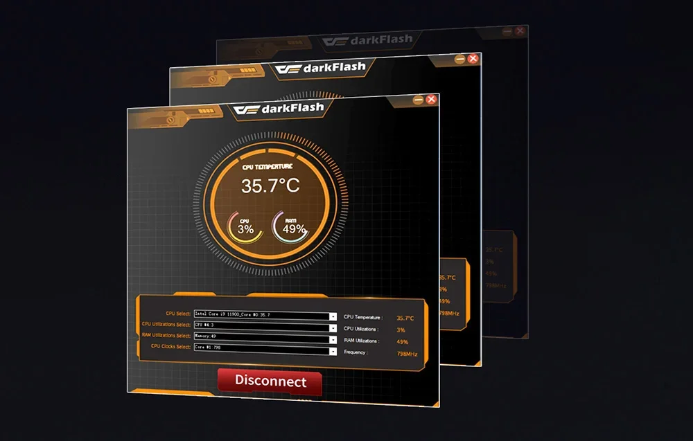 Darkflash produkts darbojas ar specializētu programmatūru, kas ļauj pilnībā kontrolēt dzesēšanas iestatījumus un uzraudzīt sistēmas veiktspēju. Pateicoties intuitīvai saskarnei, varat regulēt ventilatoru ātrumu un uzraudzīt procesora un citu komponentu temperatūru.