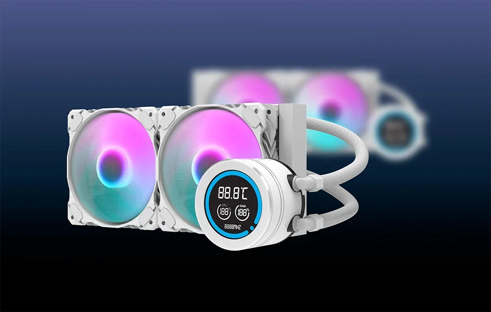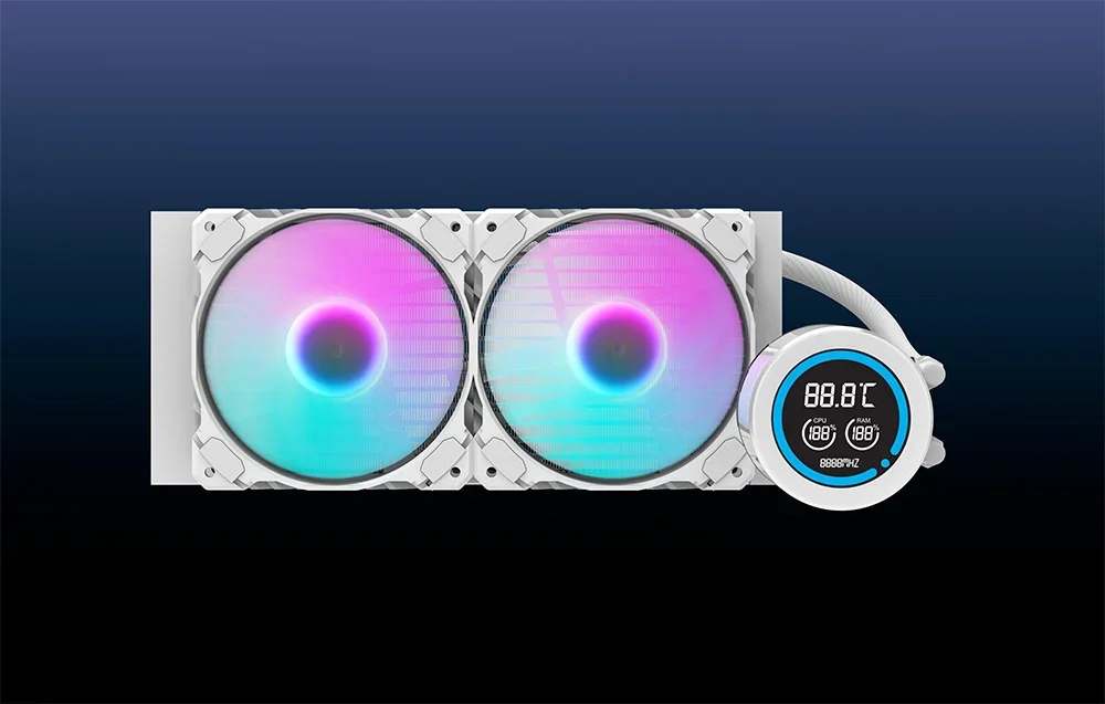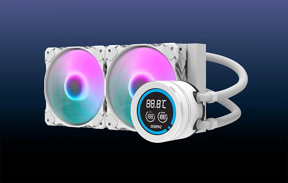 Darkflash DN-D240 ir augstas veiktspējas 240 mm ūdens dzesētājs, kas nodrošina stabilu procesora darbību zemā temperatūrā. Tam ir vara ūdens bloks un alumīnija radiators, kas efektīvi izkliedē siltumu, kas ir būtiski pie lielas sistēmas slodzes. Divi 120 mm ventilatori ar hidrauliskiem gultņiem, PWM vadību un ARGB apgaismojumu garantē optimālu gaisa plūsmu un klusu darbību. LCD ekrāns ļauj uzraudzīt procesora un RAM temperatūras, bet IIR+EPDM caurules nodrošina augstu izturību pret temperatūru un ilgmūžību.