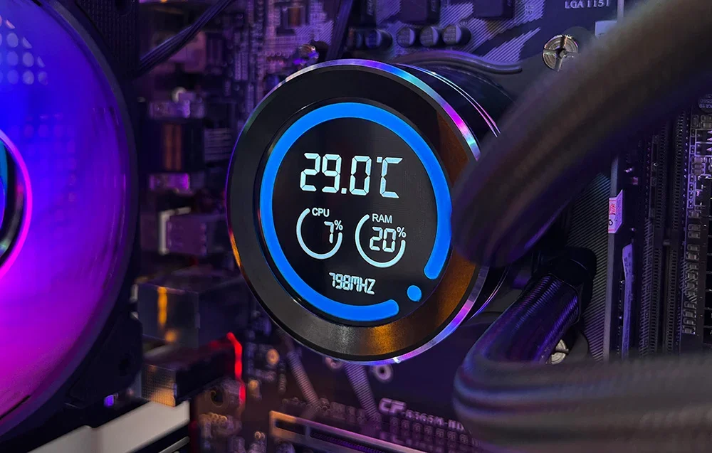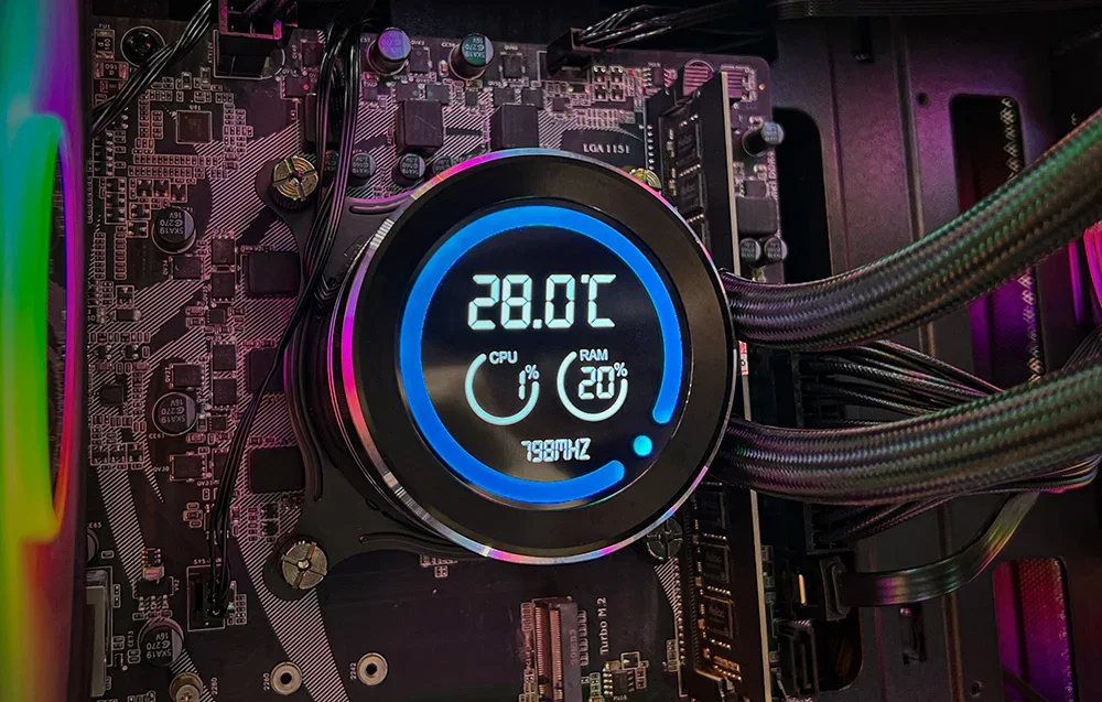 Ūdens blokam ir 2,1 collu LCD ekrāns ar 480x480 pikseļu izšķirtspēju un 16,7 miljoniem krāsu. Tas sniedz informāciju par procesora (CPU), RAM temperatūru un sūkņa ātrumu, ļaujot uzraudzīt parametrus tieši uz dzesētāja. Tas ļauj viegli pielāgot sistēmu jūsu vajadzībām.