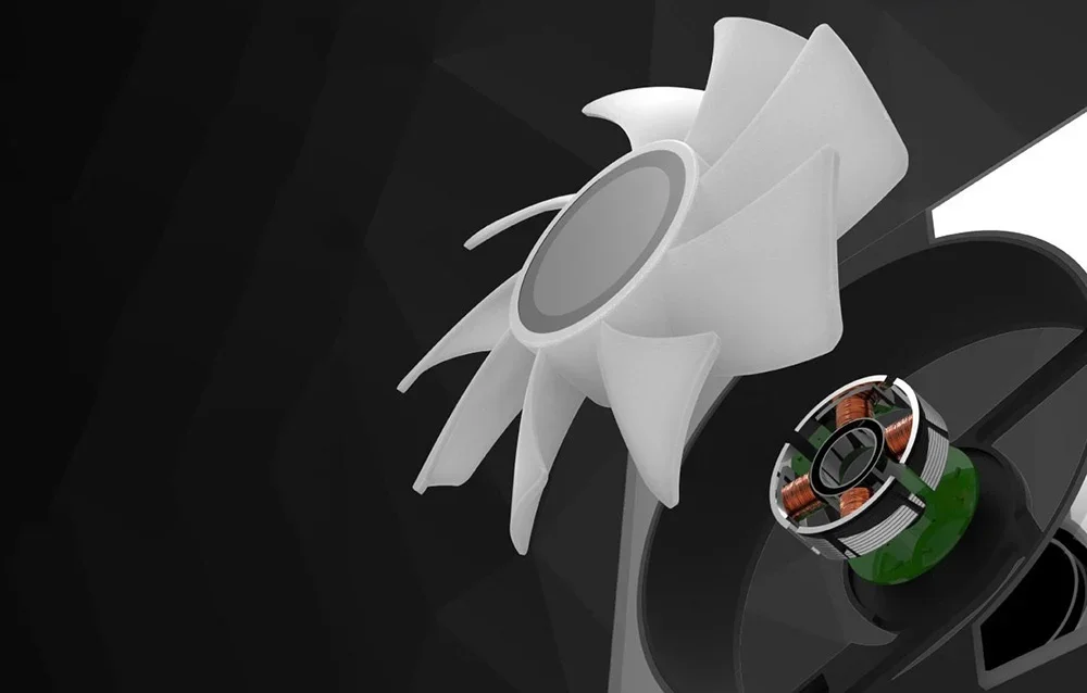 DM8 aprīkots ar 9 aerodinamiskām lāpstiņām, kas maksimāli palielina gaisa plūsmu un uzlabo dzesēšanas efektivitāti. Ventilators ģenerē 48,32 CFM gaisa plūsmu un 1,75 mm H²O statisko spiedienu, padarot to lieliski piemērotu gan procesora, gan korpusa dzesēšanai.