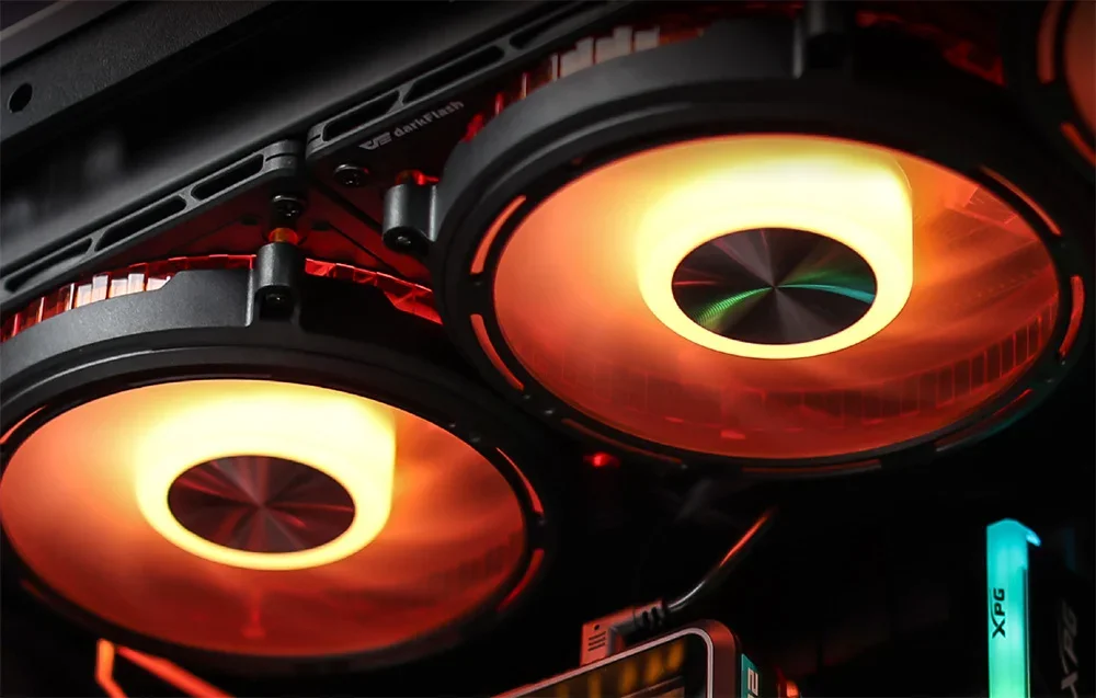 Korpusa stūros tiek izmantotas gumijas paliktņi vibrāciju slāpēšanai un rezonanses samazināšanai. Turklāt Darkflash DE8 balstīts uz hidrauliskiem gultņiem (Hydro Bearing), kas garantē klusu darbību un līdz 40 000 stundu kalpošanas laiku. Tas ir labs risinājums gan lietotājiem, kuri meklē beztrokšņa darbību, gan tiem, kas sagaida uzticamību ilgāku laiku.