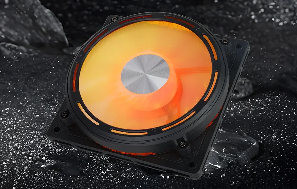 Ventilatora priekšpuse ir pārklāta ar CD Spindle virsmu – tie ir ar lāzeru iegravēti apļi, kas darbības laikā rada virpuļa efektu. Tas izskatās īpaši iespaidīgi kopā ar dinamisku ARGB apgaismojumu, kas var darboties pilnā sinhronizācijā ar pārējo sistēmu.