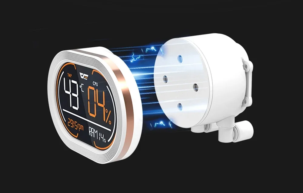 Ar Darkflash DH240D jūs iegūstat pilnu integrāciju ar populārajām RGB LED Sync apgaismojuma sistēmām, ko izmanto ASUS, GIGABYTE un MSI mātesplatēs. Tas ļauj viegli sinhronizēt apgaismojuma efektus un iegūt iespaidīgu vizuālo pieredzi, kas izceļ jūsu datora raksturu. ARGB efekti piešķirs jūsu aprīkojumam modernisku un oriģinālu izskatu jebkurā interjerā. Integrētais segmentētais ekrāns detalizēti parāda procesora dzesēšanas datus. Pateicoties zemam enerģijas patēriņam un izcilai lasāmībai pat vājā apgaismojumā, ekrāns nekavējoties informē par svarīgākajiem dzesēšanas parametriem. Attēlotie dati ir skaidri, lasāmi un vienmēr kontrolēti, ļaujot ātri reaģēt un optimizēt datora veiktspēju.