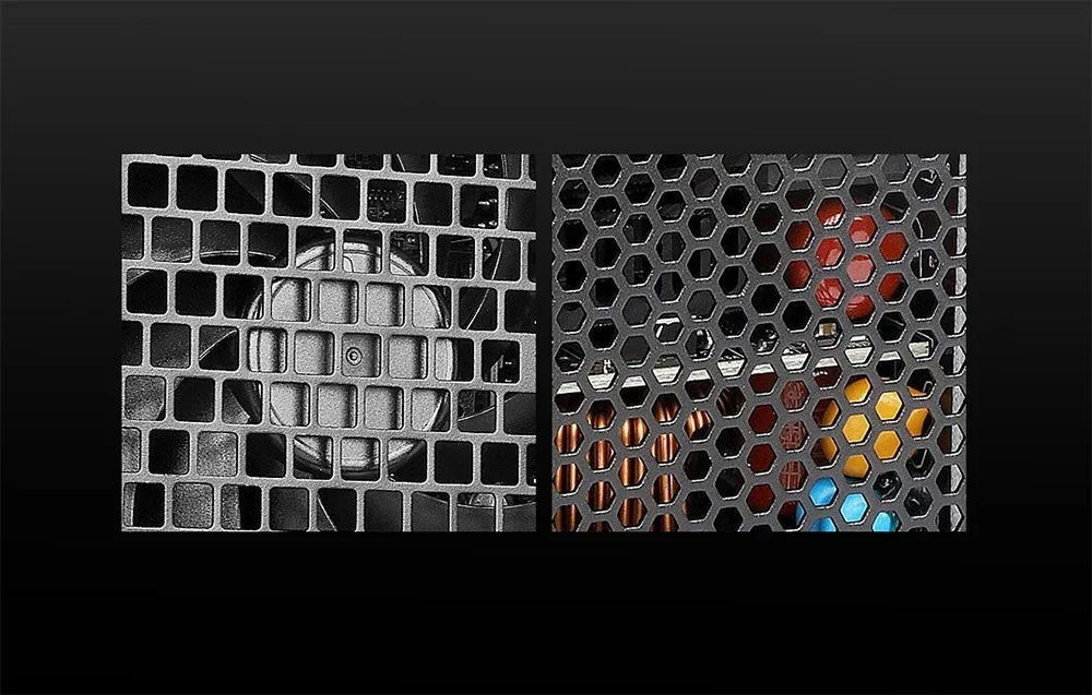 Barošanas bloks izmanto 120 mm ventilatoru ar hidrodinamisku gultni, kam raksturīga klusa darbība un ilgs kalpošanas laiks. Ventilators ieslēdzas tikai tad, kad slodze sasniedz 30%, un tā ātrums proporcionāli palielinās atkarībā no dzesēšanas pieprasījuma. Korpuss ir izstrādāts ar kvadrātveida (augšpusē) un sešstūra (aizmugurē) perforācijām, kas nodrošina efektīvu gaisa plūsmu. Šis risinājums uztur zemu trokšņa līmeni biroja darba laikā un nodrošina efektīvu dzesēšanu pie lielas slodzes.