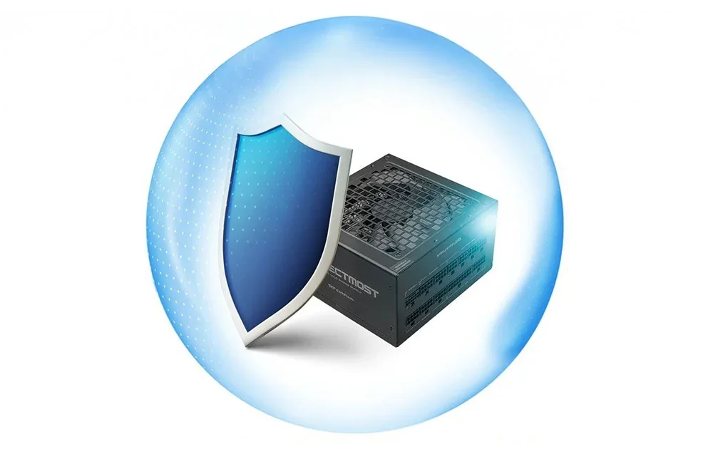 Barošanas bloks ir aprīkots ar 7 aizsardzību komplektu – pret pārspriegumu (OVP), pārslodzi (OPP), pārstrāvu (OCP), nepietiekamu spriegumu (UVP), īssavienojumu (SCP), pārkaršanu (OTP) un darbību bez slodzes (NLP). Turklāt tas atbilst 4kV pārsprieguma aizsardzības standartiem (Surge 4K), efektīvi aizsargājot datora komponentus no zibens un tīkla traucējumu sekām. Aizsardzības darbojas reāllaikā un automātiski reaģē uz jebkādām sprieguma neprecizitātēm vai pārslodzēm, palielinot visas platformas drošību.