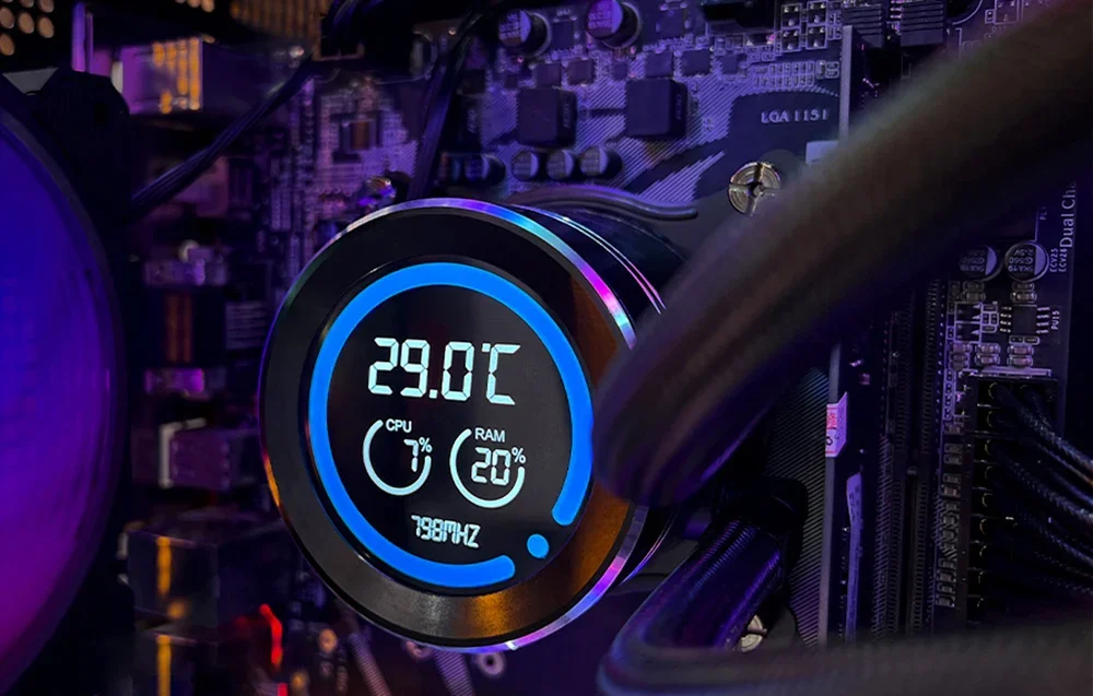 Ūdens blokam ir 2,1 collu LCD ekrāns ar 480x480 pikseļu izšķirtspēju un 16,7 miljoniem krāsu. Tas sniedz informāciju par procesora (CPU), RAM temperatūru un sūkņa ātrumu, ļaujot uzraudzīt parametrus tieši uz dzesētāja. Tas ļauj viegli pielāgot sistēmu jūsu vajadzībām.