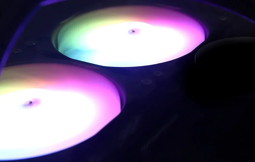 Darkflash DN-D240 dzesēšanai ir divi augstas veiktspējas 120 mm ventilatori ar PWM funkciju, kas automātiski regulē savu ātrumu no 800 līdz 1 800 apgr./min atkarībā no procesora slodzes. Ventilatori izmanto hidrauliskos gultņus, pagarinot to kalpošanas laiku līdz 40 000 stundu un nodrošinot klusu darbību ar maksimālo 61,7 CFM gaisa plūsmu. ARGB apgaismojums ļauj sinhronizēt krāsas un vizuālos efektus ar citiem komponentiem.